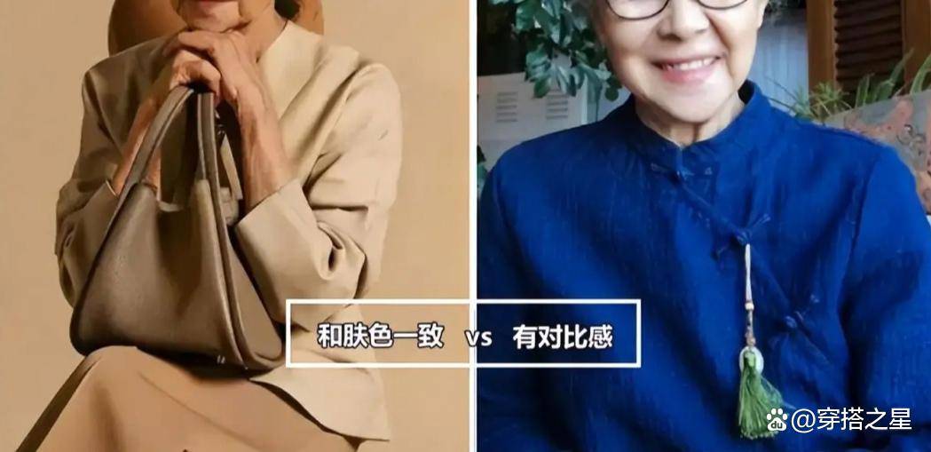 对于上了年纪的女性而言,在颜色选择上,比起潮流,与肤色有对比感的颜色才是我们的首选,从图中这组对比图就能看出来。