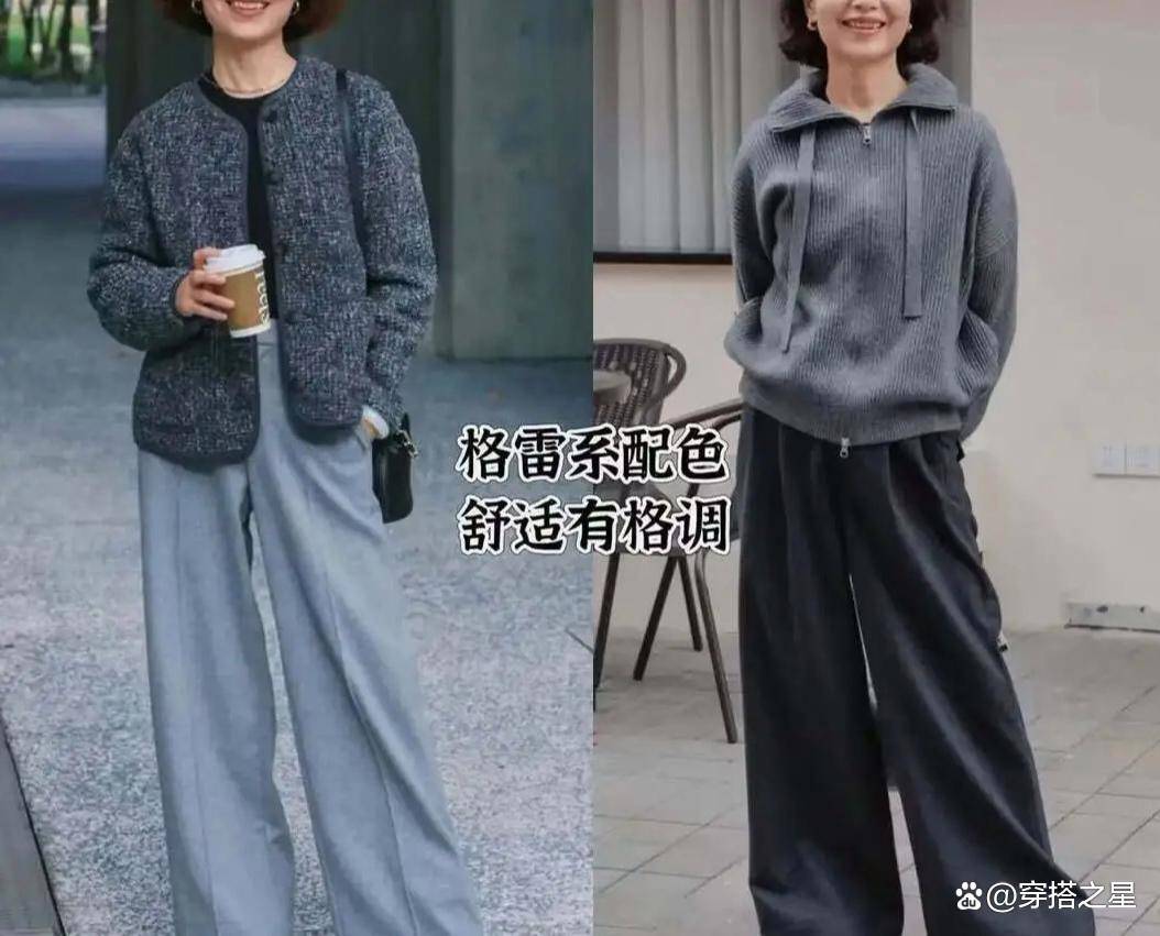 灰色系的穿搭在秋冬季节也很受欢迎,不仅与当下所流行的格雷系穿搭异曲同工,上了年纪的女性穿上它,还能让整个人看起来很有格调。