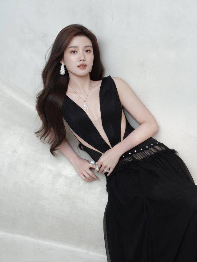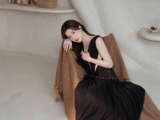一袭黑色深V长裙与白墙形成极致对比,卢昱晓以一手轻撑墙面的随性姿态slay全场!胸前镂空设计暗藏性感心机,微卷长发如瀑布倾泻,发尾轻扫肩头时,眼神却已悄然“锁死”镜头。她完美演绎了“松弛感”的顶级表达——无需夸张动作,仅靠流转的眼波与红唇微启的瞬间,便让整个画面充满故事张力。