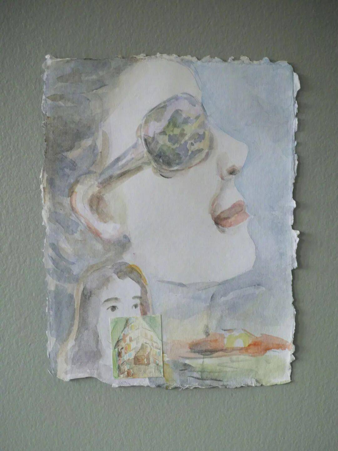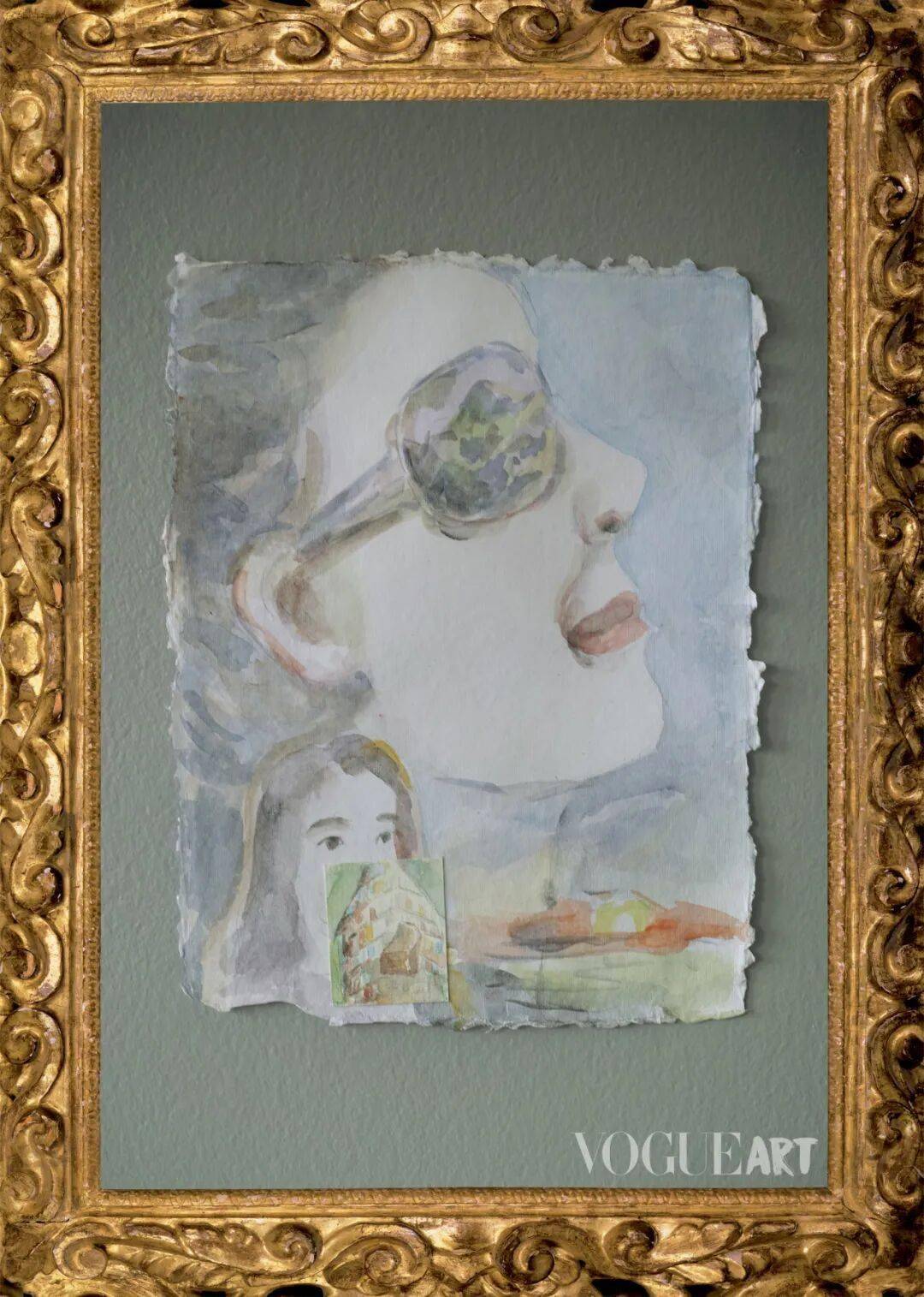 艺术家陈可为这次章泽天与VOGUE ART的合作创作了一幅作品。画的左下角有一个小书柜的拼贴,因为章泽天告诉陈可,她喜欢在书房里待着,经常一坐就是一个下午。