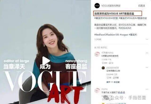 对于《VOGUE Art》与章泽天之间的合作,有业内分析认为,VOGUE Art 作为今年 3 月新推出的子刊,需借助章泽天的资本资源与艺术圈人脉拓展影响力。