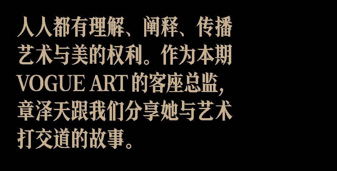 11月12日,《VOGUE服饰与美容》杂志发布消息,正式官宣章泽天担任旗下艺术子刊《VOGUE Art》客座总监,同时登上该杂志11月刊新封面。