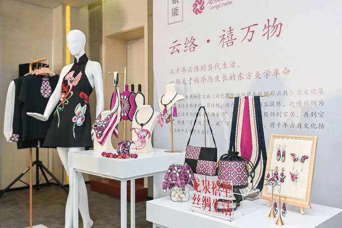 除了韩束,苏州丝绸博物馆还与龙泉禧里合作推出“云络·禧万物”新中式系列创新产品,与“茶颜悦色”“王者荣耀”等品牌合作,将丝绸纹样数据应用于传统及新中式服饰、潮玩手办、网络游戏、汽车、贵金属等各领域。