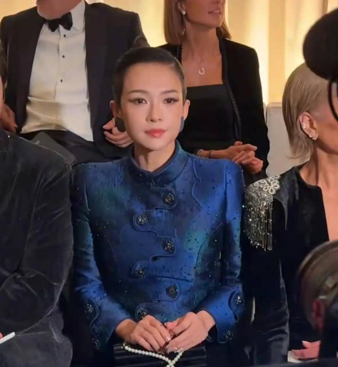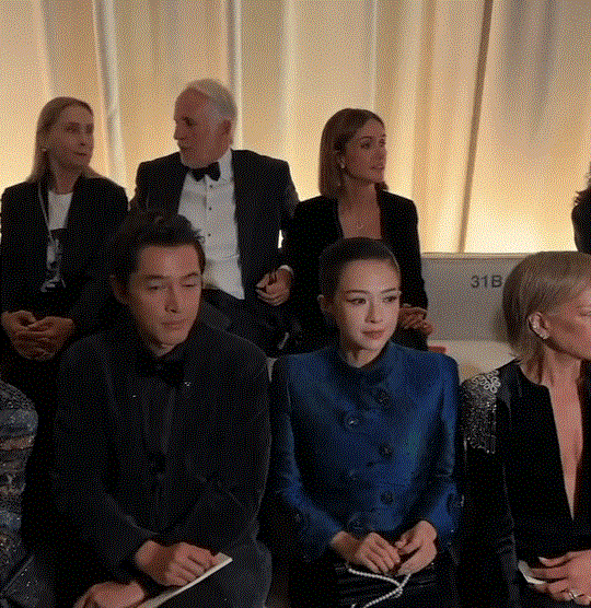 两位东方巨星被安排在秀场第一排,章子怡身旁就坐着“大魔王”凯特·布兰切特,这个位置的含金量不言而喻。当章子怡与胡歌同框时,仿佛时尚画报活了过来——她明艳大气,他清俊挺拔,构成了一道绝美的风景线。