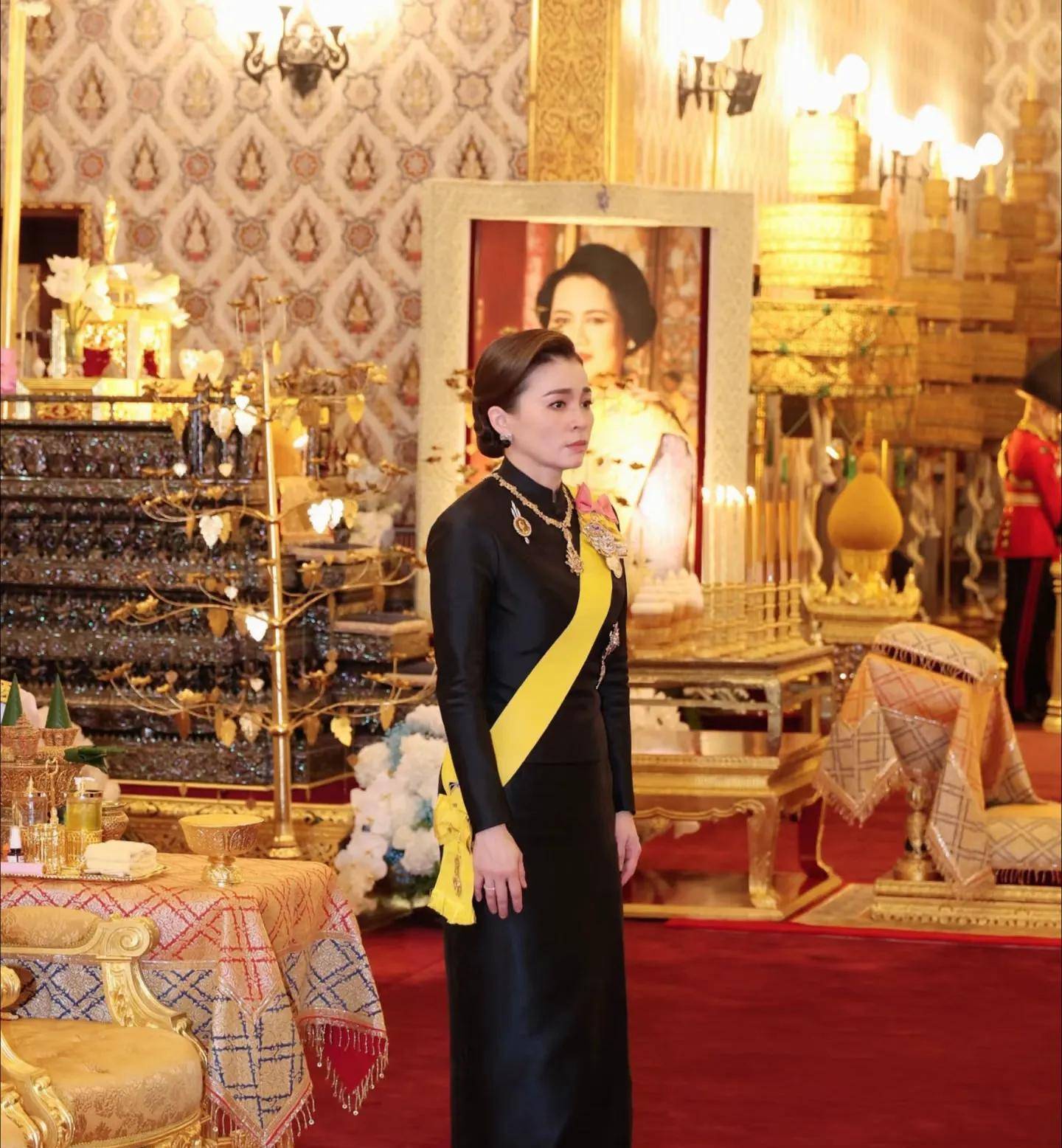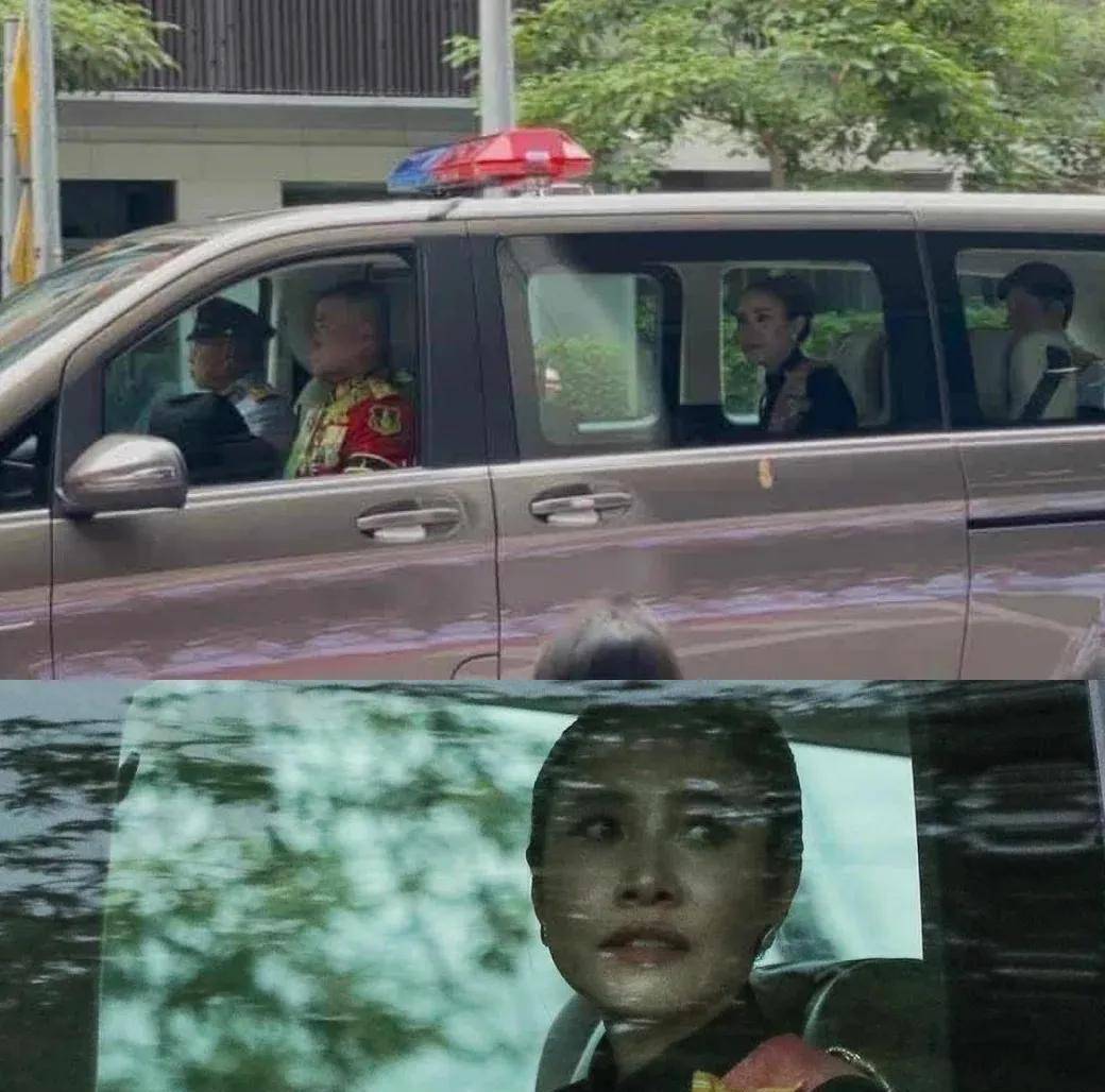 她的此次华丽回归,无疑印证了在泰王心中的特殊分量。送葬行列里,玛哈国王与苏提达王后、提帮功王子同车而行,而诗妮娜则独乘专驾。透过车窗可见她身着玄色丧服,玉容虽带悲戚却难掩风华。