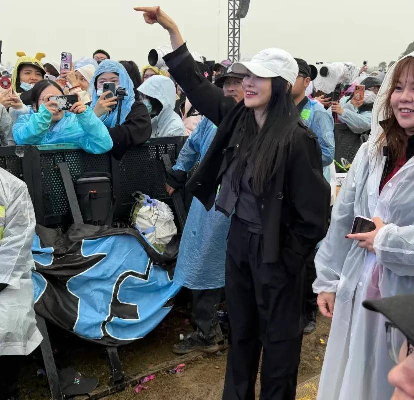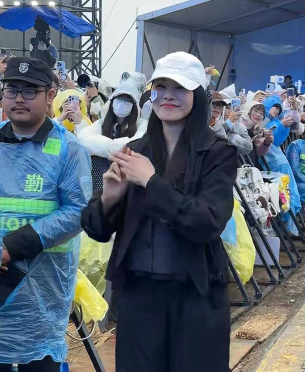 更令人惊喜的是,观众席中出现了一个熟悉的身影——头戴白色鸭舌帽的伊能静正随着音乐节奏挥舞双臂。她以黑色西装混搭工装裤的潮流造型亮相,活力四射的状态完全颠覆了人们对星妈的固有印象。