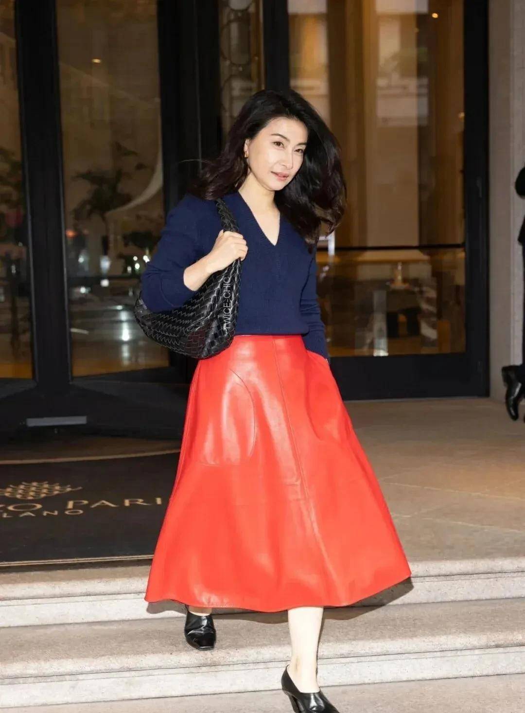 今年九月,她受Bottega Veneta邀请亮相米兰时装周,藏蓝色针织搭配波浪卷发,精致妆容尽显时尚魅力。