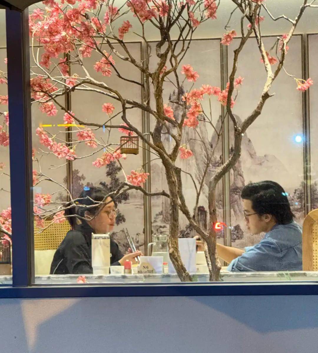 最甜的是两人相处的状态!没有腻歪歪的互动,就安安静静对坐吃饭,偶尔抬头交换个眼神,空气里都飘着"我们自成结界"的默契。要说颜值,娱乐圈帅哥美女扎堆,偏偏他俩组队就产生了神奇效应——就像网友神点评:"这两人同框,比三人群聊还容易认,根本是行走的人脸识别测试仪!"