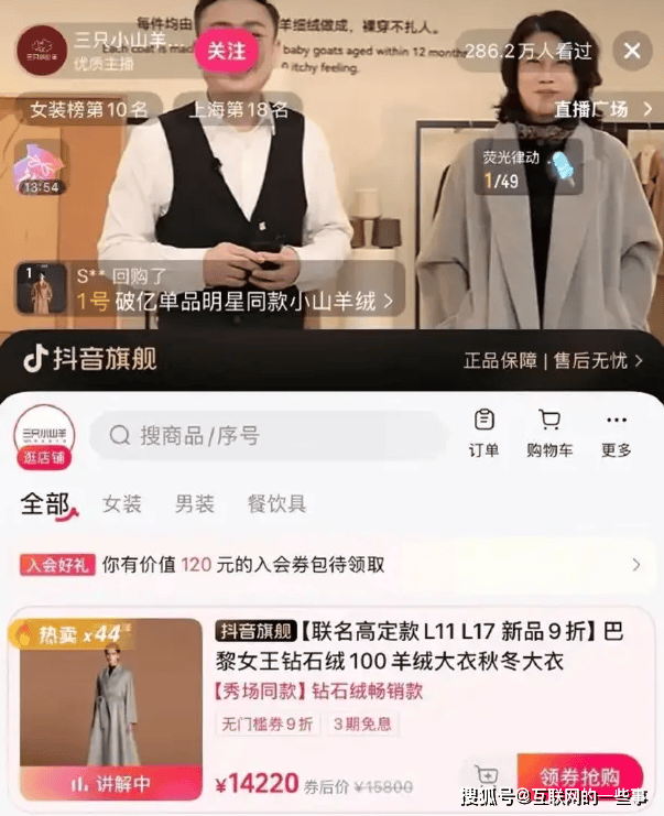 在“三只小山羊”品牌的服装直播间,面对镜头毫无生疏感。她穿着一件售价9980元的羊绒大衣,举止优雅,气场全开,观众弹幕里全是“好看”“气质真好”。当晚直播热度飙升,直接冲上抖音女装榜前十。