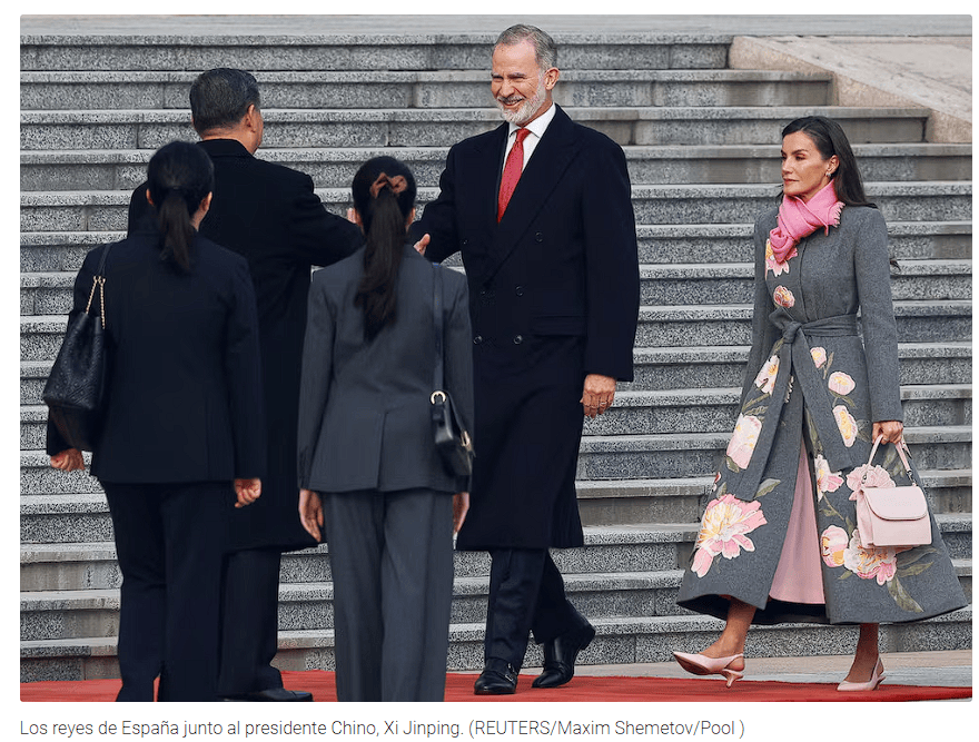 莱蒂西亚王后再展风华,此次亮相于中国心脏地带。西班牙国王夫妇对北京的国事访问贡献了堪称头条与社交媒体宠儿的经典画面——一袭卡罗莱娜·埃莱拉刺绣花卉大衣惊艳四座,以纯粹时尚语汇演绎外交礼仪,同时向东方传统致以精妙敬意。