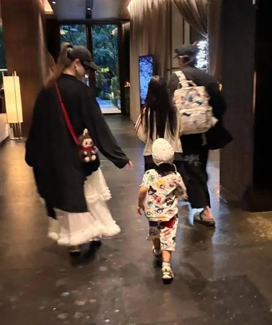 现场捕捉到的画面里,戚薇身穿雾霾蓝风衣搭配奶油白阔腿裤,慵懒随性的穿搭难掩明星气场。墨镜与贝雷帽的巧妙搭配,让她在人群中格外耀眼。李承铉则以全黑造型亮相,利落寸头搭配简约卫衣,走在妻儿前方开路,挺拔背影宛若时尚大片。