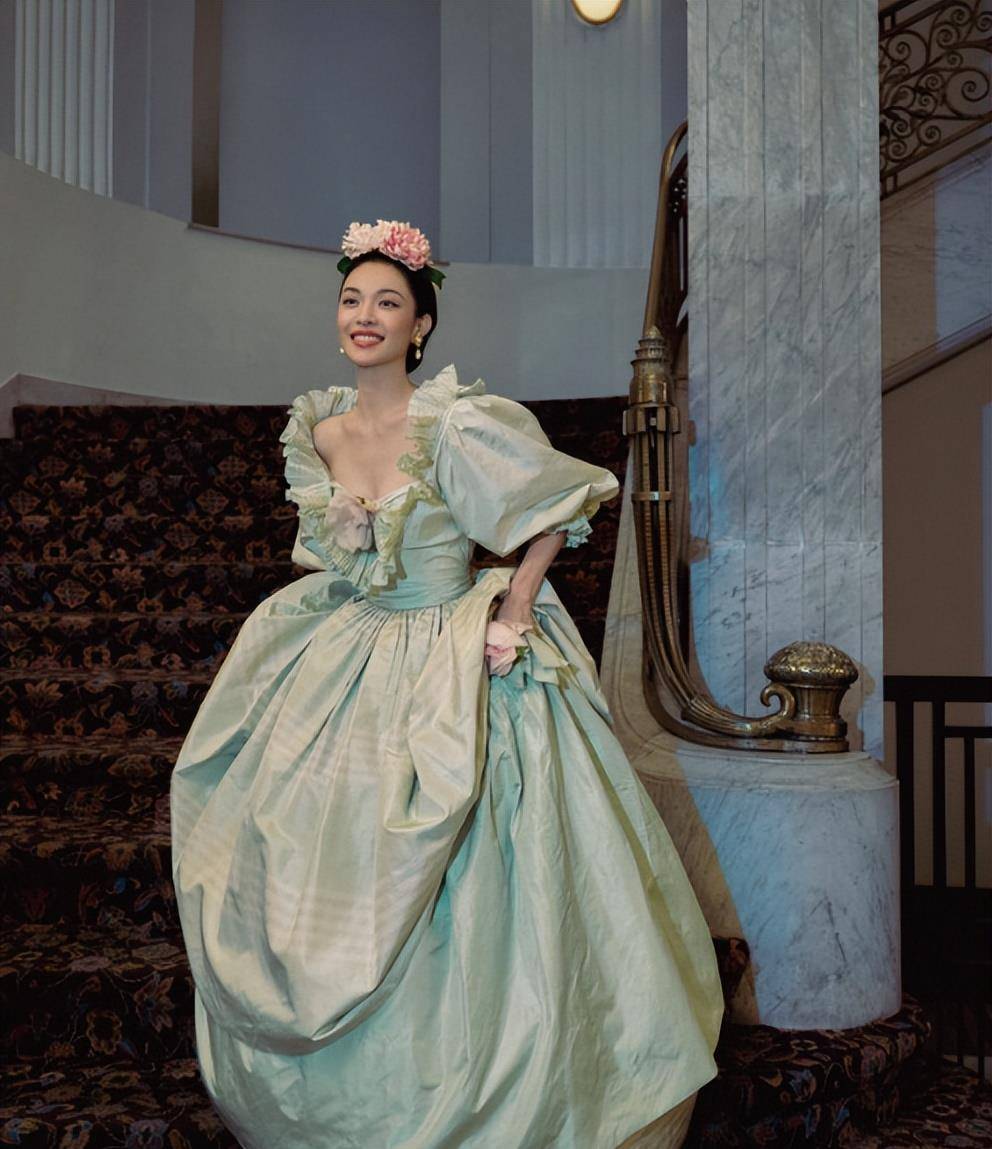 最近一场时尚盛典上,钟楚曦的造型可谓做足了功夫。先是一袭点缀着精致花朵的礼服,搭配别致的黑色袖套,整个人散发着神秘又迷人的气质;随后换上清新淡雅的浅绿色长裙,泡泡袖的设计更添几分古典韵味,仿佛穿越时空而来的贵族少女。