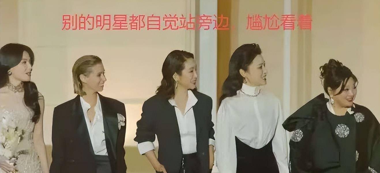 不过最引人注目的,还要数合影环节发生的精彩一幕。当明星们陆续登台时,其他艺人都在自然地调整位置,而钟楚曦却始终保持在最显眼的地方。即便身旁的刘亦菲礼貌地示意她移动,她也只是稍稍侧身,依然稳居中心。