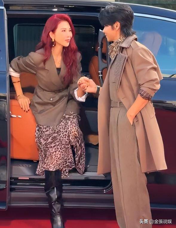 蔡少芬那天穿着一身职业装出现,红色的头发在灯光下格外显眼。