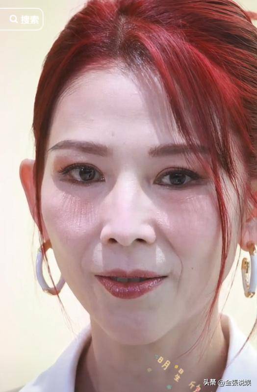 红发造型的她看起来状态不太好,妆容粗糙得让人心疼,腮红像是随手抹上去的,堆成了一坨坨。