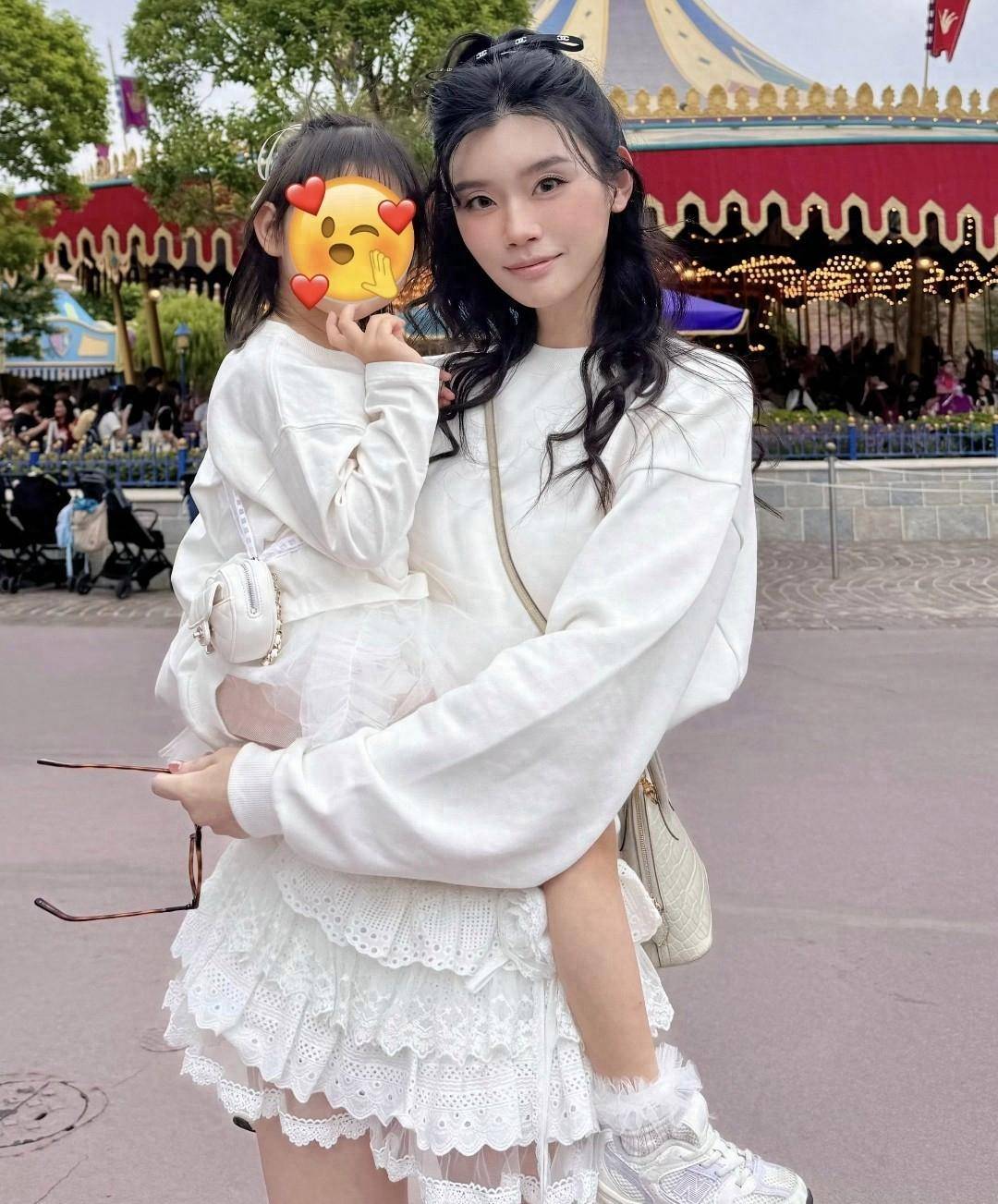 生日当天,一家人去了迪士尼。奚梦瑶牵着女儿追米老鼠,何猷君就拿着相机跟在后面拍。哥哥何广燊也很贴心,和妹妹一起分蛋糕,画面特别温馨。