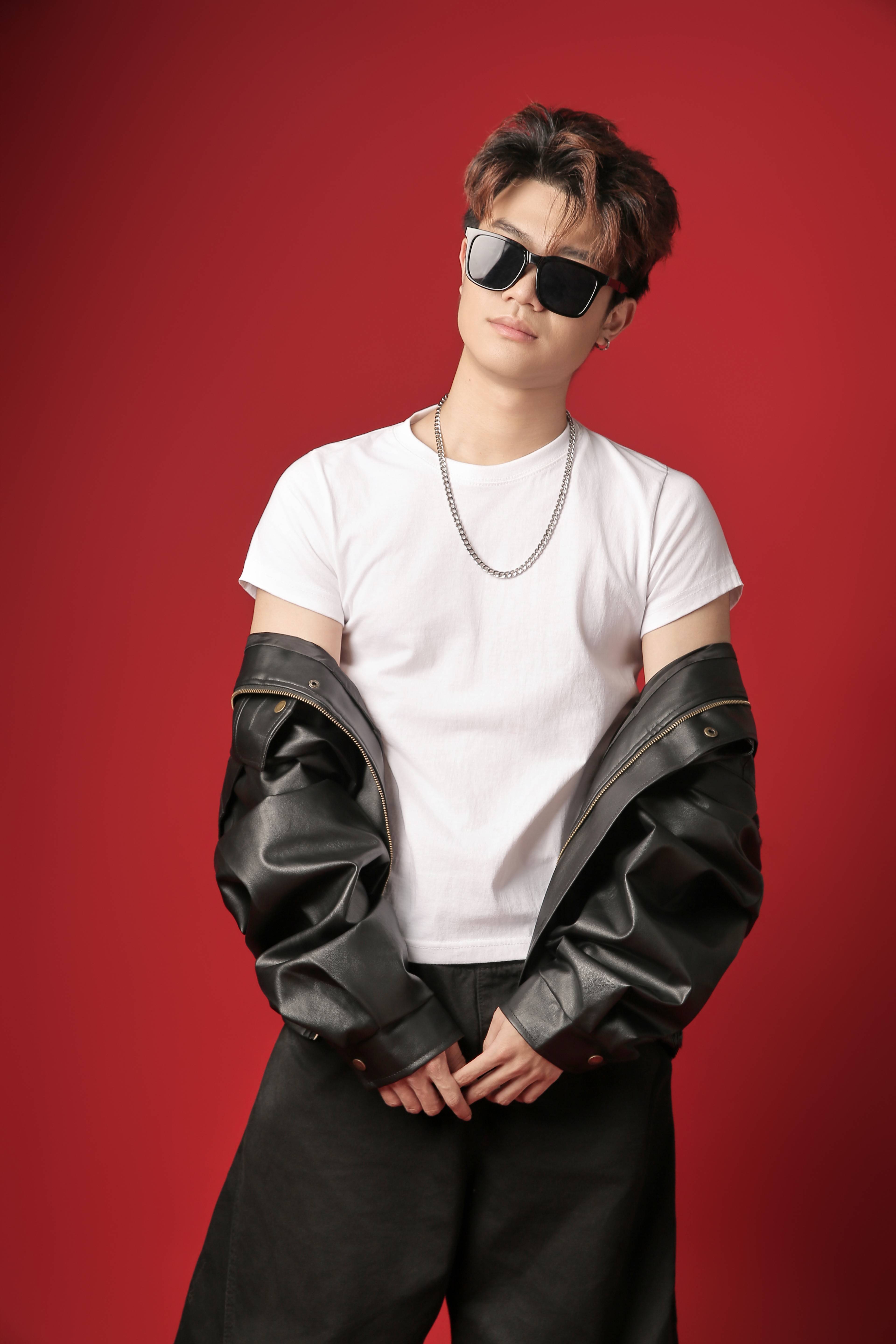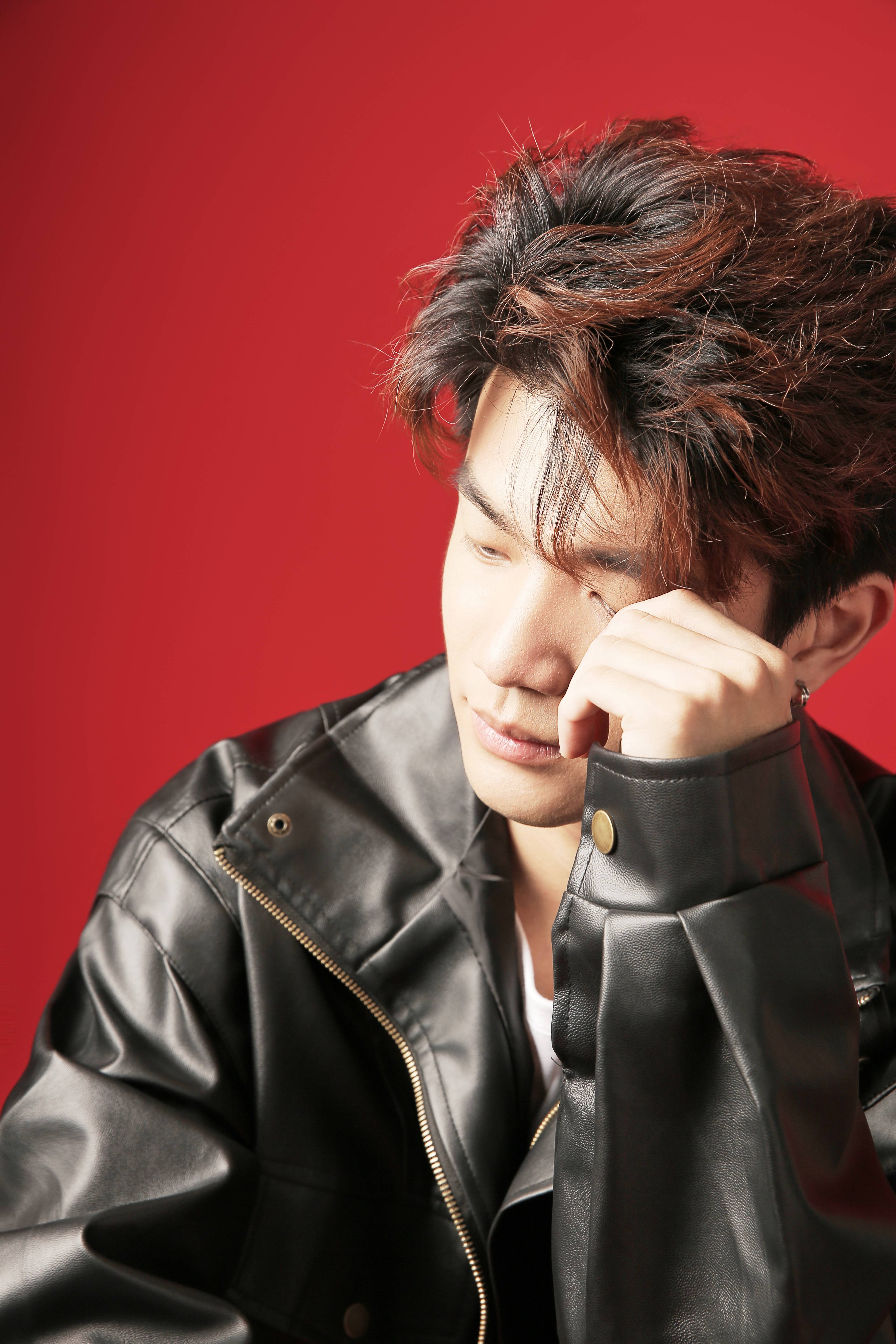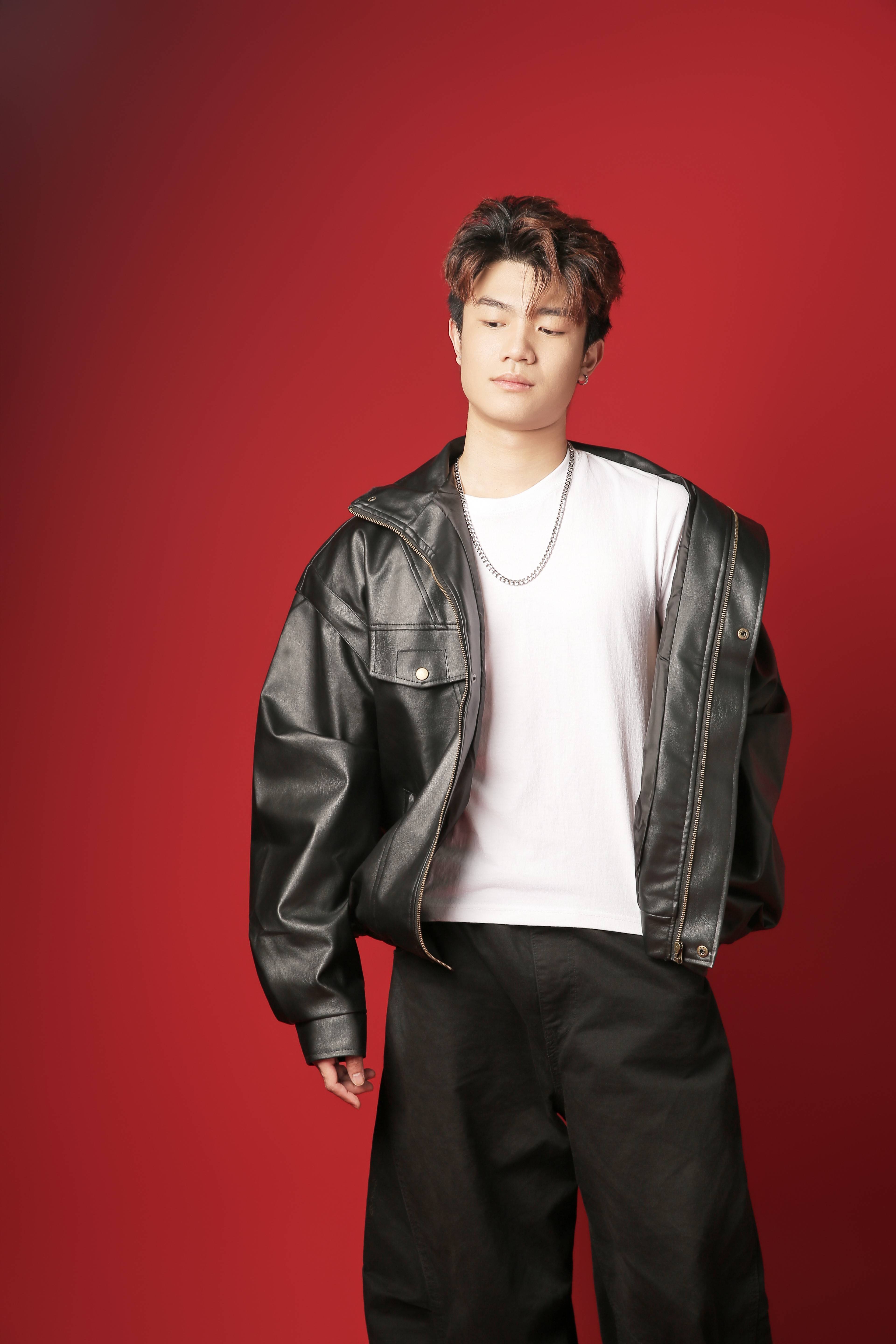 白 T 的软与皮夹克的硬,在他身上揉成了 “不费力的时髦”:不是刻意模仿街头潮人,是把 “真实” 穿在身上的舒展。他站在红背景前时,肩线放松却不塌,裤脚垂在鞋面的长度刚好盖过脚踝 —— 像周末和朋友逛完市集的路人,偶然被镜头捕捉到的瞬间,自然得让人忍不住想跟着他的步调慢下来。