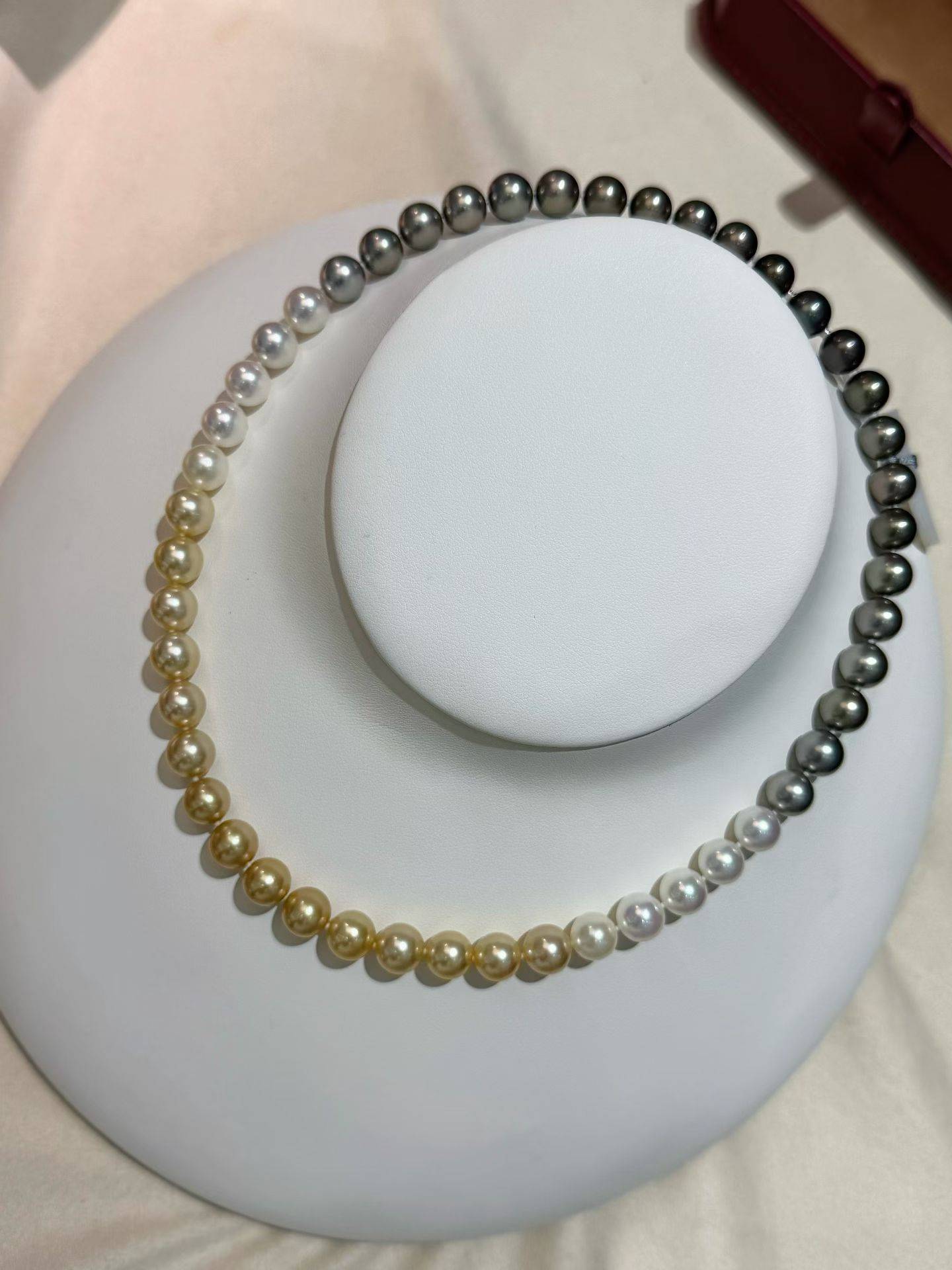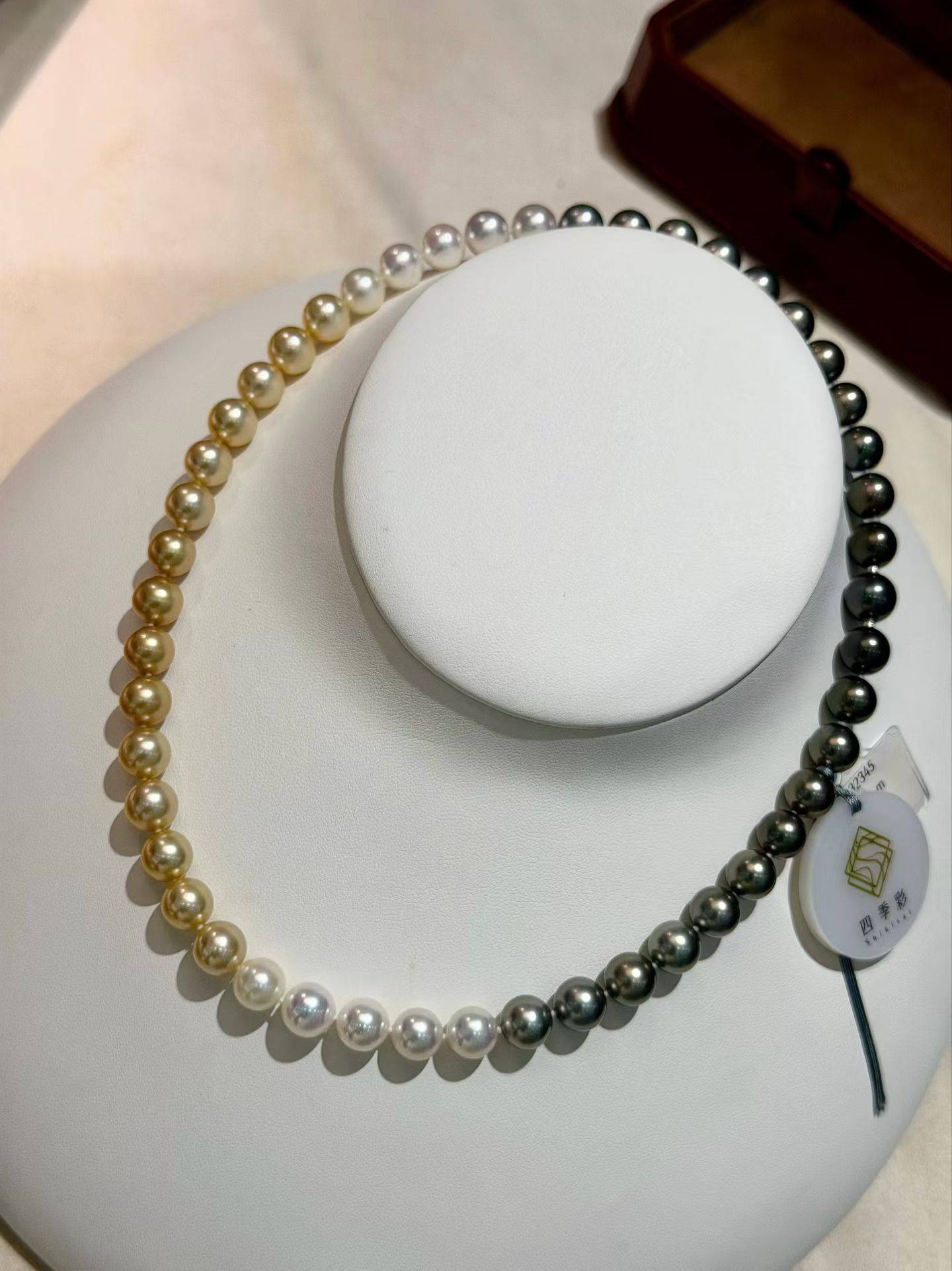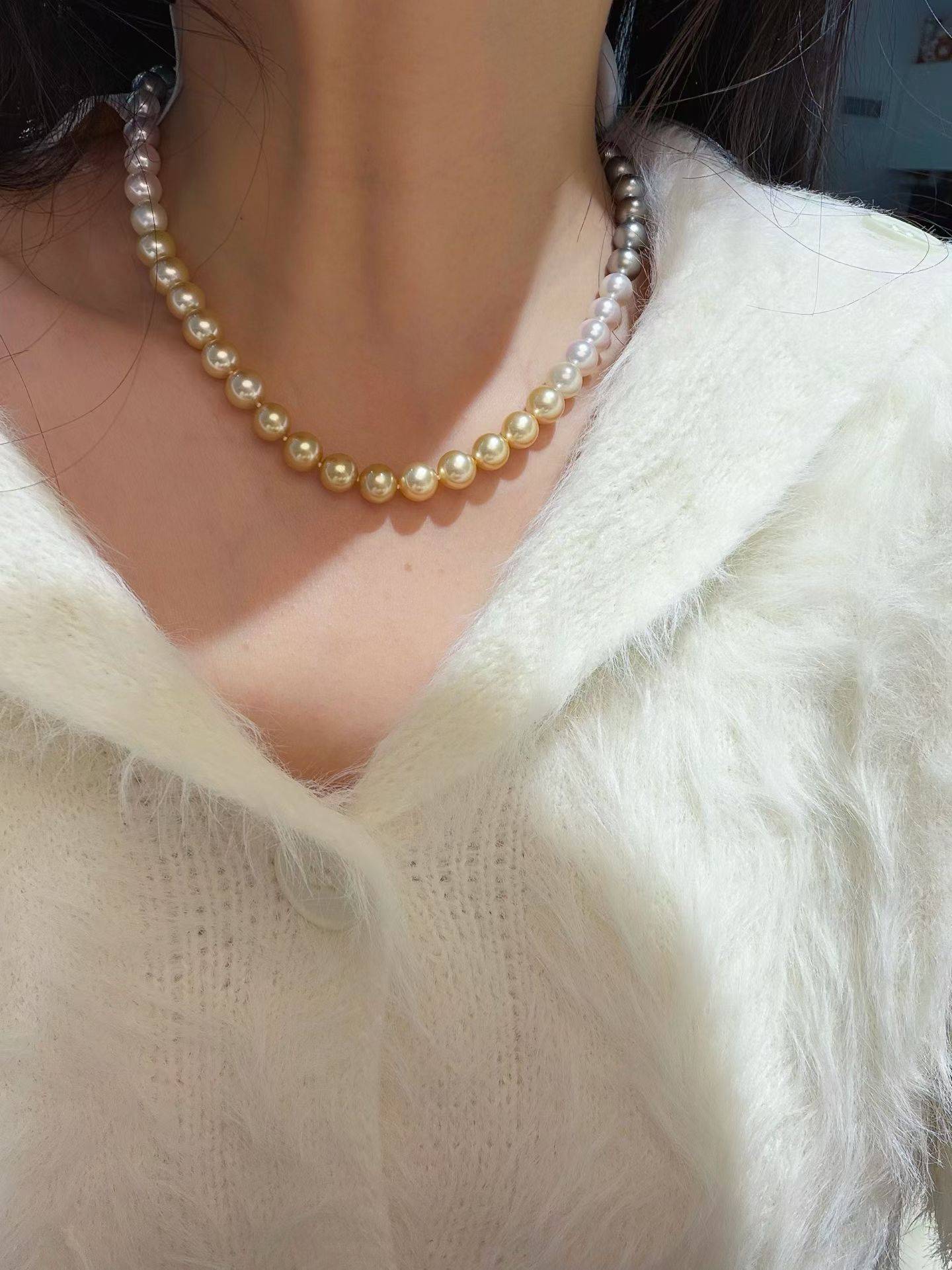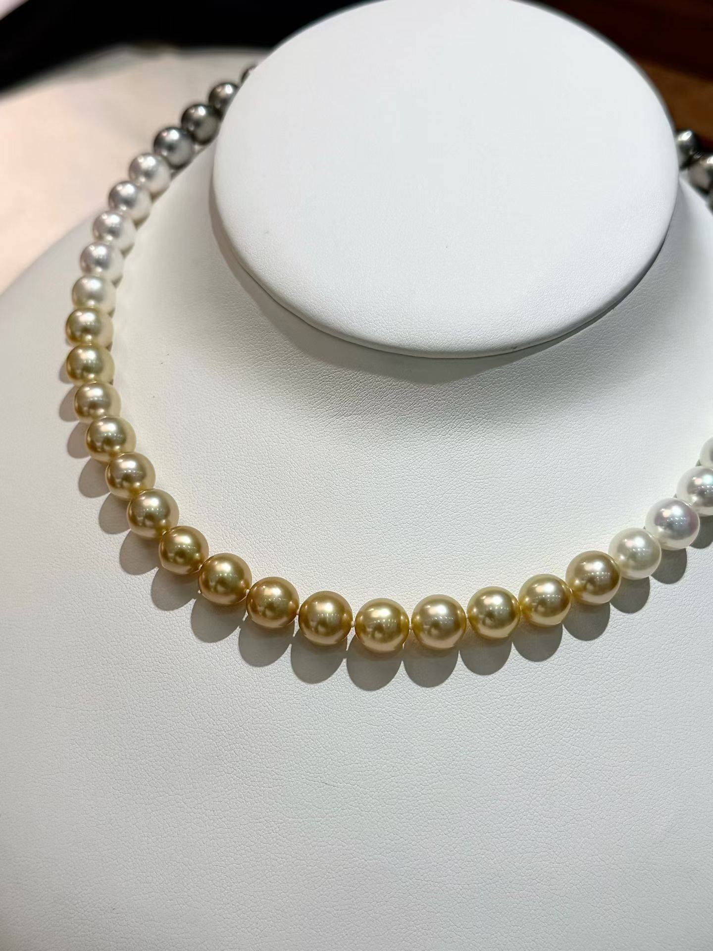 ❤️高品质,无瑕!无瑕四季彩!!没有瑕疵,360° 怎么戴可以,隐藏扣。8.5-8.9mm 南洋珠&大溪地&日本 akoya 海水珍珠,正圆,极光,油亮。总长 45cm 左右,附证书,