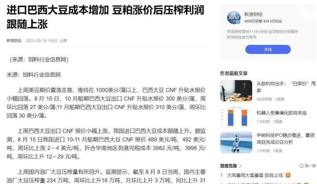 巴西大豆涨价反遭滞港教训 中国买家集体暂停订单!巴西趁中美贸易摩擦对华大豆报价飙升,每蒲式耳比美国贵近3美元。中国买家因此暂停了800万吨订单。这一反击背后是中国多年布局的储备、多元进口和技术替代三大支撑。