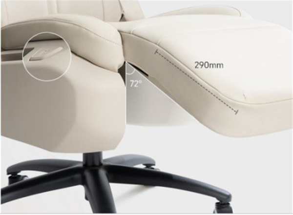 值得一提的是,这款椅子还支持手动调节角度,适应坐姿和躺卧两种不同的姿势,腿托长度达到了290毫米,且同样支持调节角度,最大可达72度。