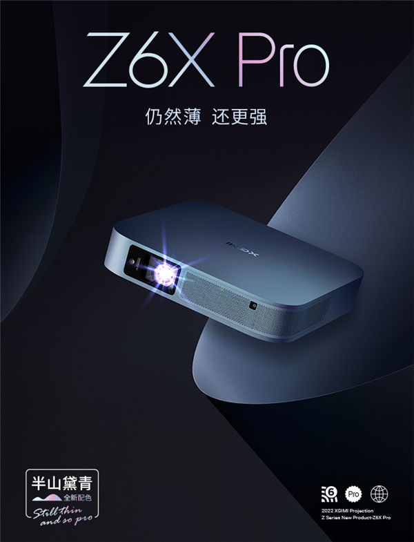 配置升级后,极米Z6X Pro依旧保持了轻薄的造型,厚度只有5cm。除了亮度和内存的升级外,Z6X Pro还推出了新配色,取名很有国风的韵味——半山黛青。