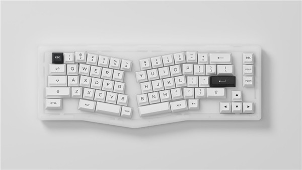 首次发售针对新手,以成品发售,标配ASA BOW键帽,全透Akko CS水晶轴,赠送大全套增补(总计约199颗键帽)。默认安装铝合金定位板,赠送PC定位板,Poron中棉,硅胶轴下垫,EVA白色底棉(背光效果),硅胶套Gas垫片。