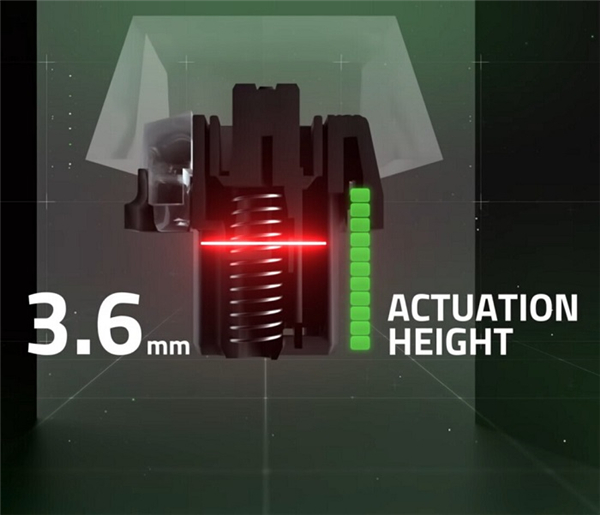 玩家可通过 Razer Synapse 驱动软件,在 1.5~3.6 mm 的触发行程之间进行自定义。