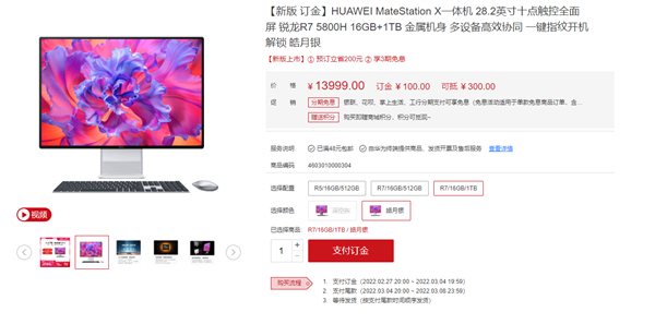 作为华为首款一体机、全球屏占比最高的一体机——华为MateStation X目前提供锐龙5 5600H/16GB/512GB、锐龙7 5800H/16GB+512GB、锐龙7 5800H/16GB+1TB三种配置,售价9999元起。
