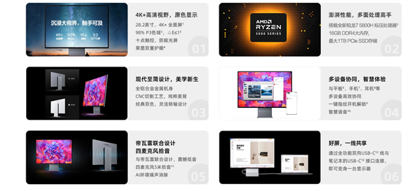 同时,支持98% DCI-P3色域及sRGB色域,可显示10.7亿色彩,支持HDR400,色准∆ E≤1,达到专业级屏幕的要求,画面显示精准。