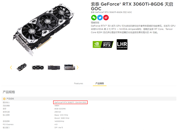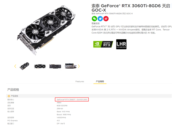 索泰现在推出了三款新版RTX 3060 Ti,核心编号明确标注为GA103-200,而原版是GA104-202。