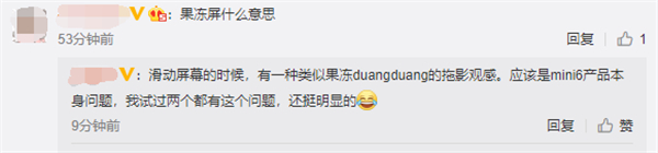 对此,有网友表示,“应该是mini 6产品本身问题,试过两个都有这个问题,还挺明显的”,“屏幕竖着有,横屏就感觉不出”。
