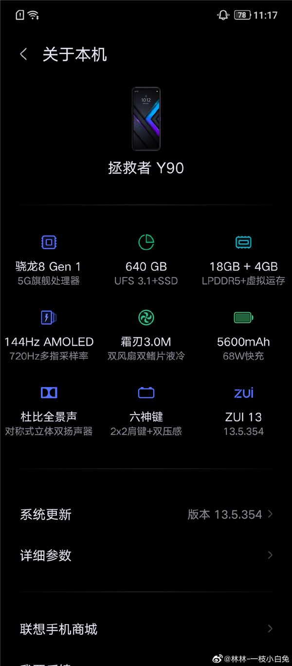今天,博主@林林-一枝小白兔晒出了拯救者Y90的参数截图,有关这款手机的细节规格悉数揭晓。