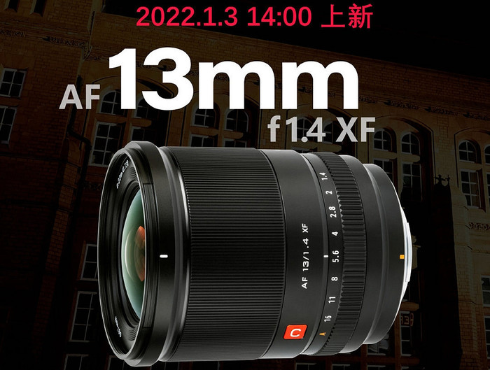 唯卓仕即将在1月3日发布AF 13mm F1.4 XF镜头。镜头将会有E卡口和X卡口版本。