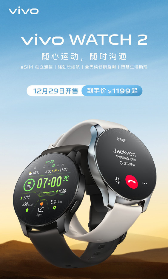 日前,在vivo S12系列新品发布会上,vivo WATCH 2也正式亮相。该手表支持eSIM独立通信,续航强劲,支持全天候健康监测,并拥有智慧生活助理,售价1299元。12月29日,vivo WATCH 2正式开售,购买可享100元优惠,到手价1199元起。