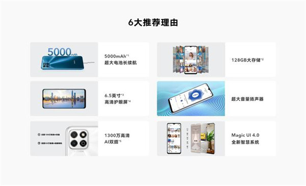 据了解,该机搭载紫光展锐虎贲 Unisoc T610,后置 1300 万像素主摄,前置 500 万像素水滴摄像头,配备 Magic UI 4.0 系统。