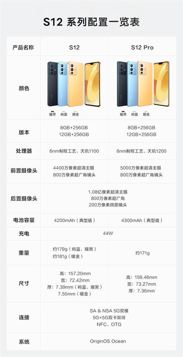 12 月 29 日消息,vivo S12 系列于 12 月 22 日发布,包括 vivo S12 及 vivo S12 Pro 两款机型,拥有屿蓝、暖金、耀黑三款配色,售价 2799 元起,将于明日(12 月 30 日)零点正式开售。