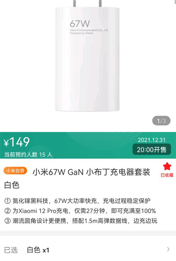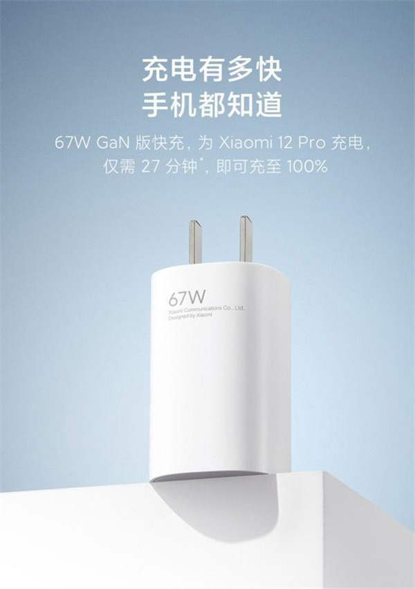 12 月 29 日消息,小米新款 67W 小布丁氮化镓充电器已经上架官方商城预约,售价 149 元,12 月 31 日正式开卖。为小米 12 Pro 充电,仅需 27 分钟,即可充电至 100%。