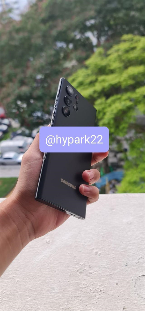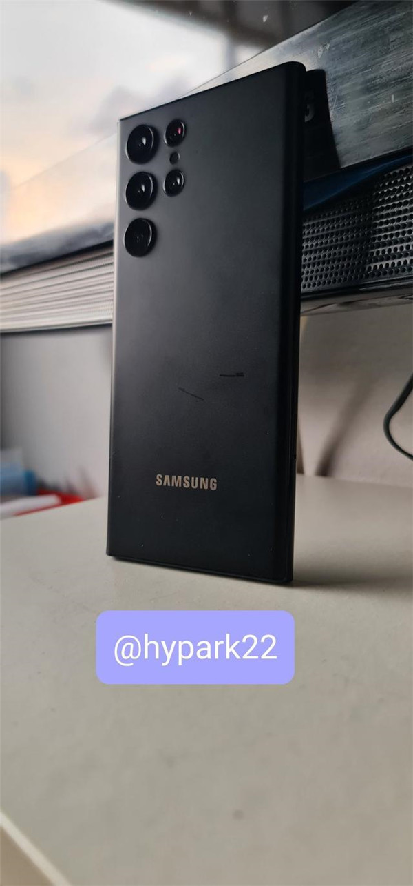 同时,推特用户 @hypark22 本周发布了几张 Galaxy S22 Ultra 的图片,展示了哑光黑色机型,其气泡状的摄像头阵列,以及 Note-esque 的平坦边缘。