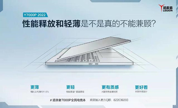 12 月 28 日消息,今天,联想拯救者发布了 Y7000P 2022 最新预热信息,称新品更强、更轻、更薄。