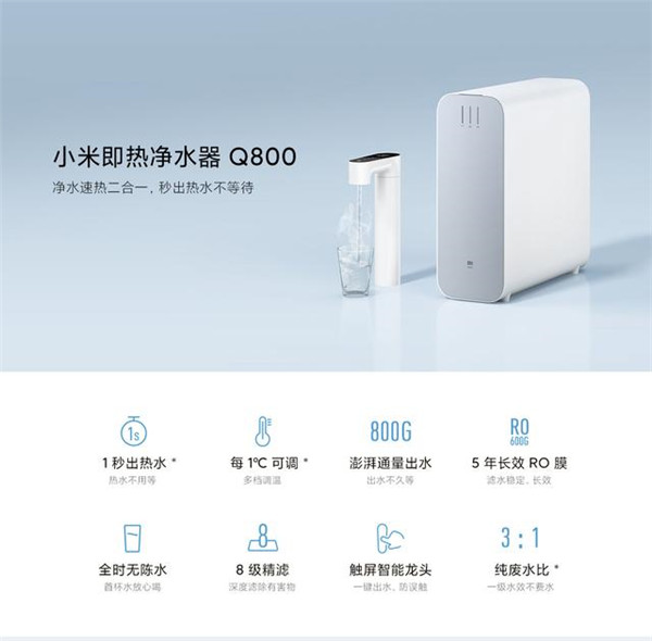12 月 28 日消息,小米现推出了一款小米即热净水器 Q800,预付订金 100 元抵 300 元,预售到手价 3799 元,赠电磁炉 2 和桌面暖风机。