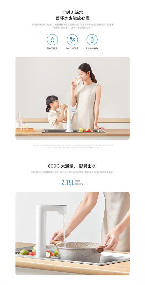 据介绍,这款净水器采用 360° 环绕加热,1 秒即热创新专利技术,可连续出热水,即滤即饮无需久等,有效避免管路残余水、反复加热干水。