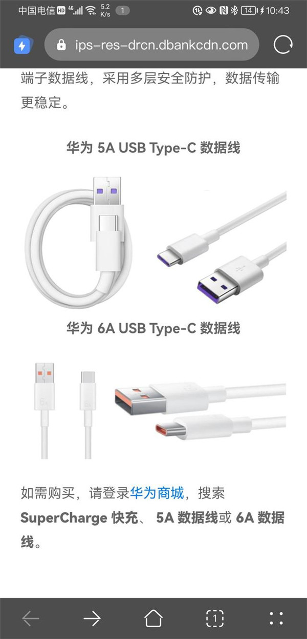 有华为 Mate 20X 鸿蒙手机用户发现,现在通知中可提示,“此数据线会降低充电速度,请使用官方推荐的数据线并正确连接。”点击了解更多后,就会跳转到相关页面,查看华为官方的 5A USB Type-C 和 5A / 6A USB Type-C 数据线,可登录华为商城购买。