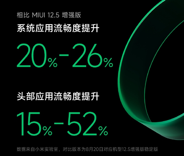 官方表示,经过半年优化后,MIUI 13在头部应用使用场景中,相较MIUI 12.5增强版,流畅度提升15%-52%、系统应用流畅度提升20%-26,头部三方应用流畅度提升15%—52%,还有多个高频使用场景掉帧率下降超过90%。