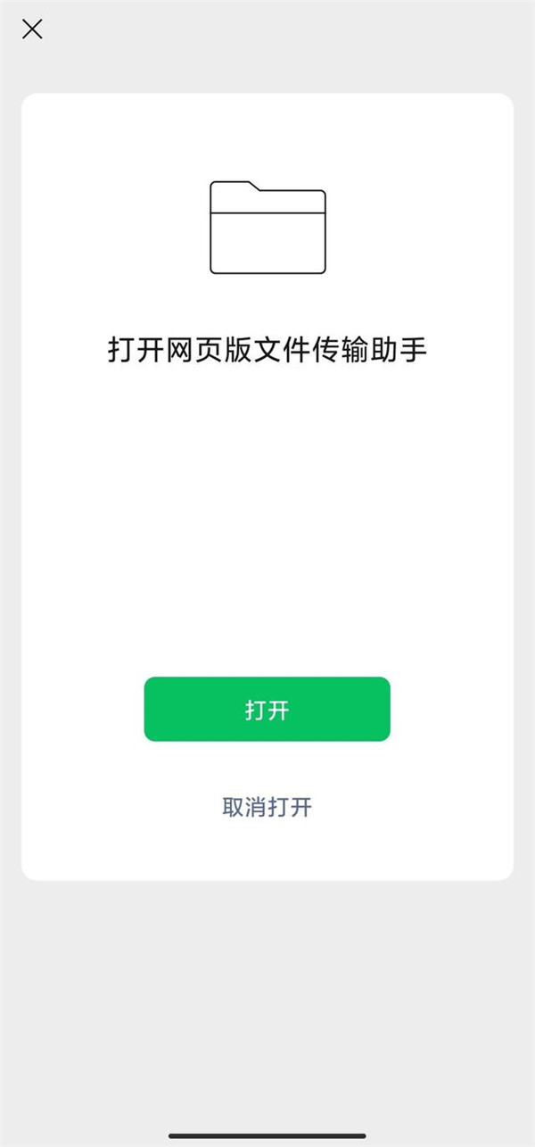 当你用手机扫码时,手机端界面显示正在打开“网页版文件传输助手”,你这时可选择打开或取消打开,毕竟被其他不法分子利用。