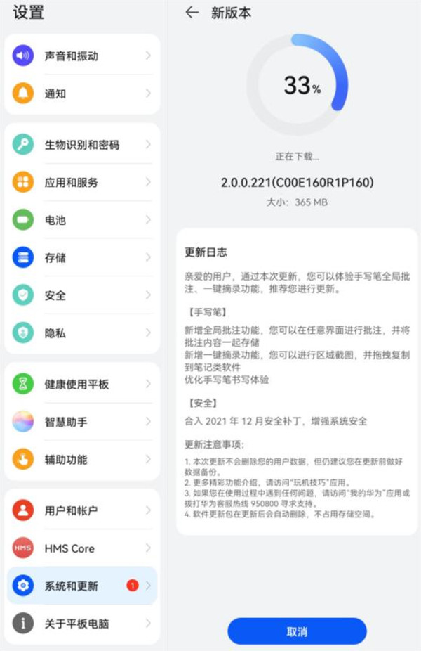 12 月 24 日消息,据网友反馈,近期,华为 MatePad Pro 2019 开始推送鸿蒙 HarmonyOS 2.0.0.221 更新,下载包大小为 365MB。
