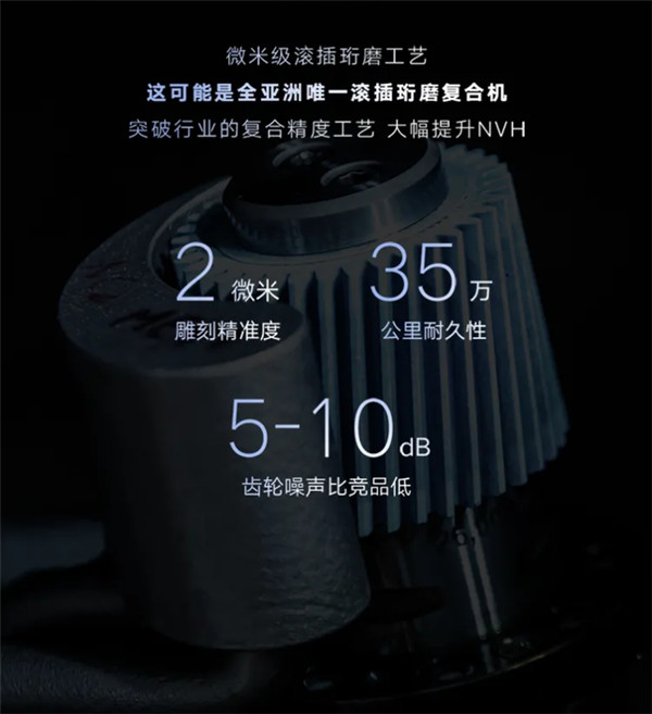 发动机采用微米级滚插珩磨工艺,雕刻精度可达 2 微米,使得产品寿命达到 35 万公里,齿轮噪声比竞品低 5-10dB。