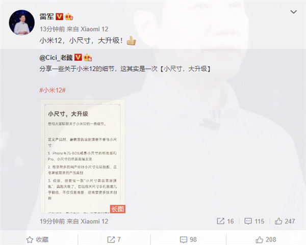 12 月 24 日消息,小米今日继续预热即将到来的小米 12 系列,谈到了被用户关心的“小屏满血高端旗舰”以及小米 12 部分细节。