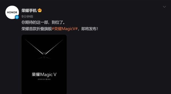 12月22日,荣耀手机官方正式宣布,荣耀首款折叠旗舰荣耀MagicV即将发布,“你期待的这一部,到位了”。虽然本次官宣言简意赅,而且也没有公布具体的发布时间,但是还是透露出了诸多重要信息,接下来我们就带大家分析一下。