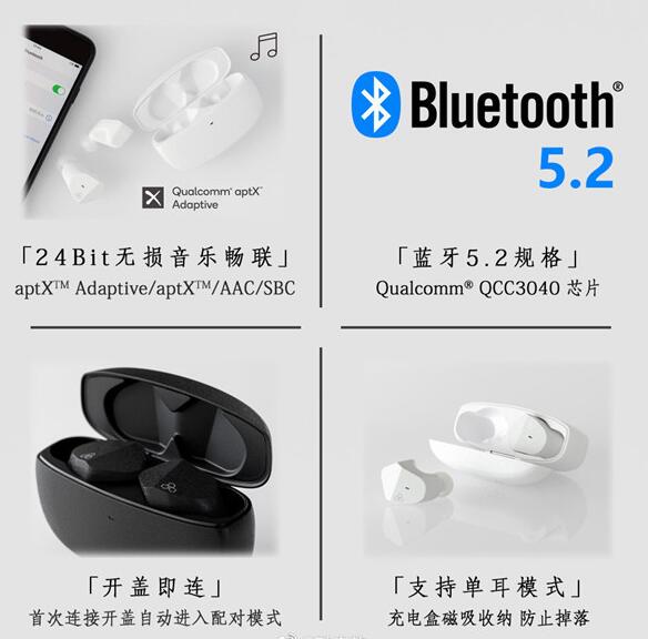 final ZE3000 搭载高通 QCC3040 蓝牙芯片,支持蓝牙 5.2 规格,兼容 aptX Adaptive、aptX、AAC、SBC 音频编码。产品支持单耳模式,可以开盖即连。