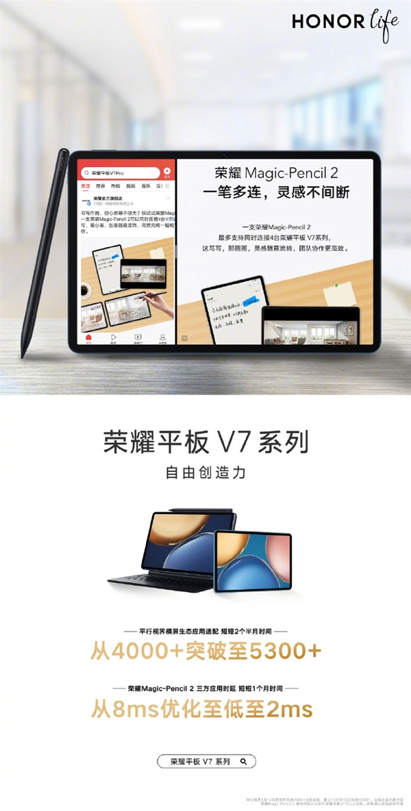 12月17日,荣耀智慧生活宣布,荣耀平板V7系列两大功能全新升级。